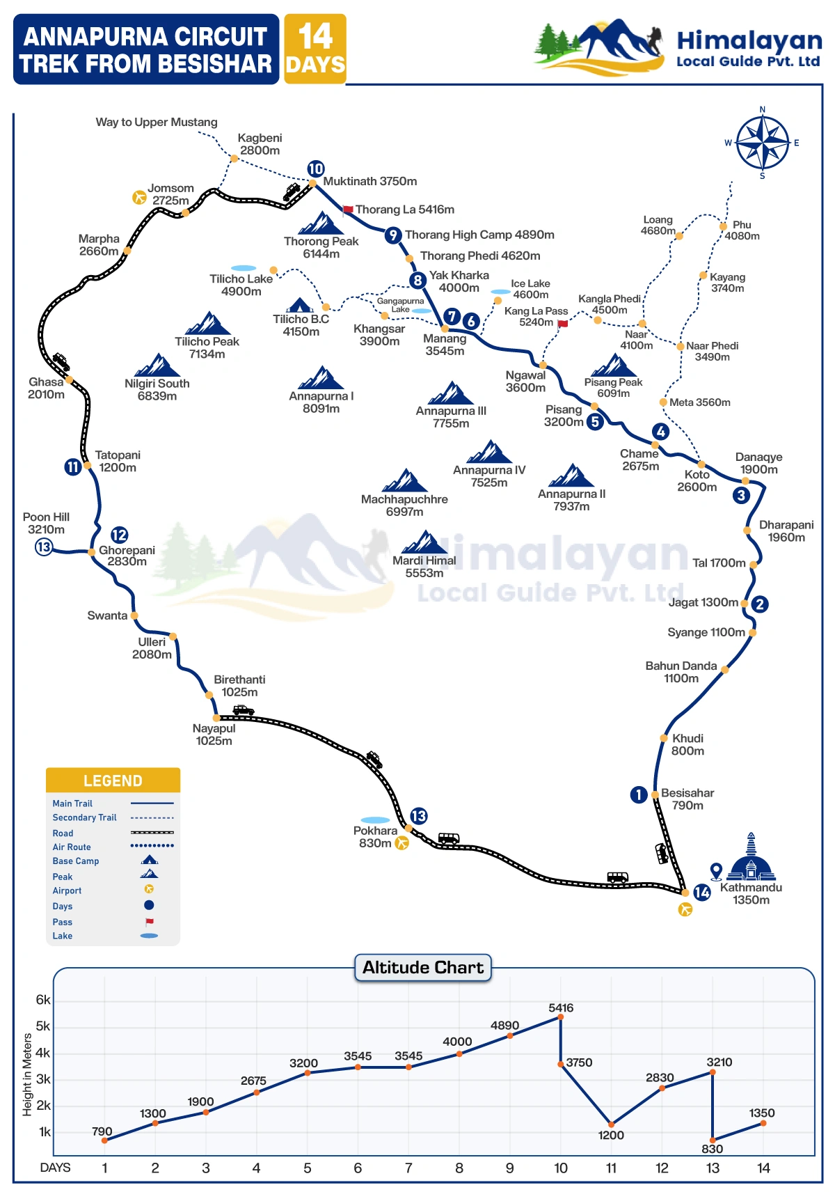 The 14-day Annapurna Circuit trek starting from Besishar offers the best trekking experience to those with limited time, but still want to discover the Magical Himalayas of trekking around the Annapurna regions.
