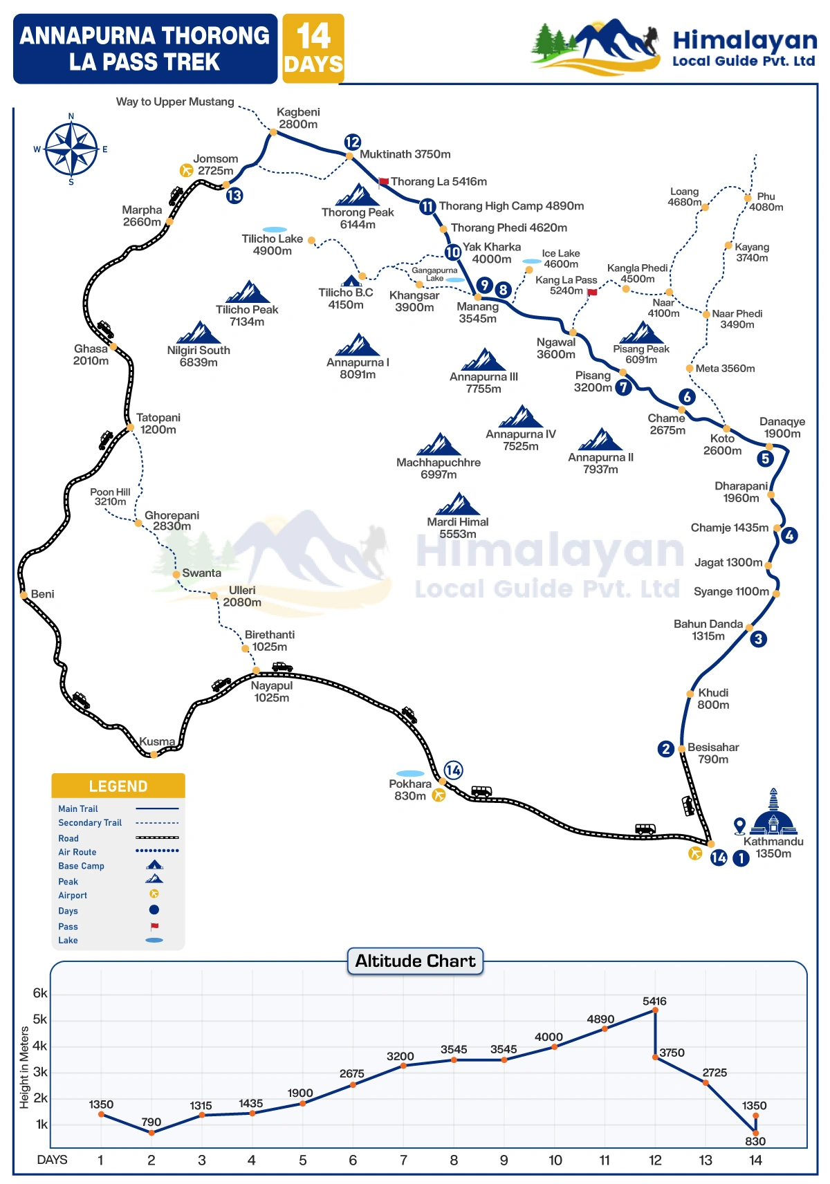 The crossing Annapurna Thorong La Pass (5,416m) trek is one of the most difficult pass treks in the Annapurna Himalayan region. Annapurna Thorong La pass combines trekking best for a local adventure that loves nature, landscape enjoying different Gurung villages, and Tibetan village's traditional, cultural, language, and ethnic group' styles.