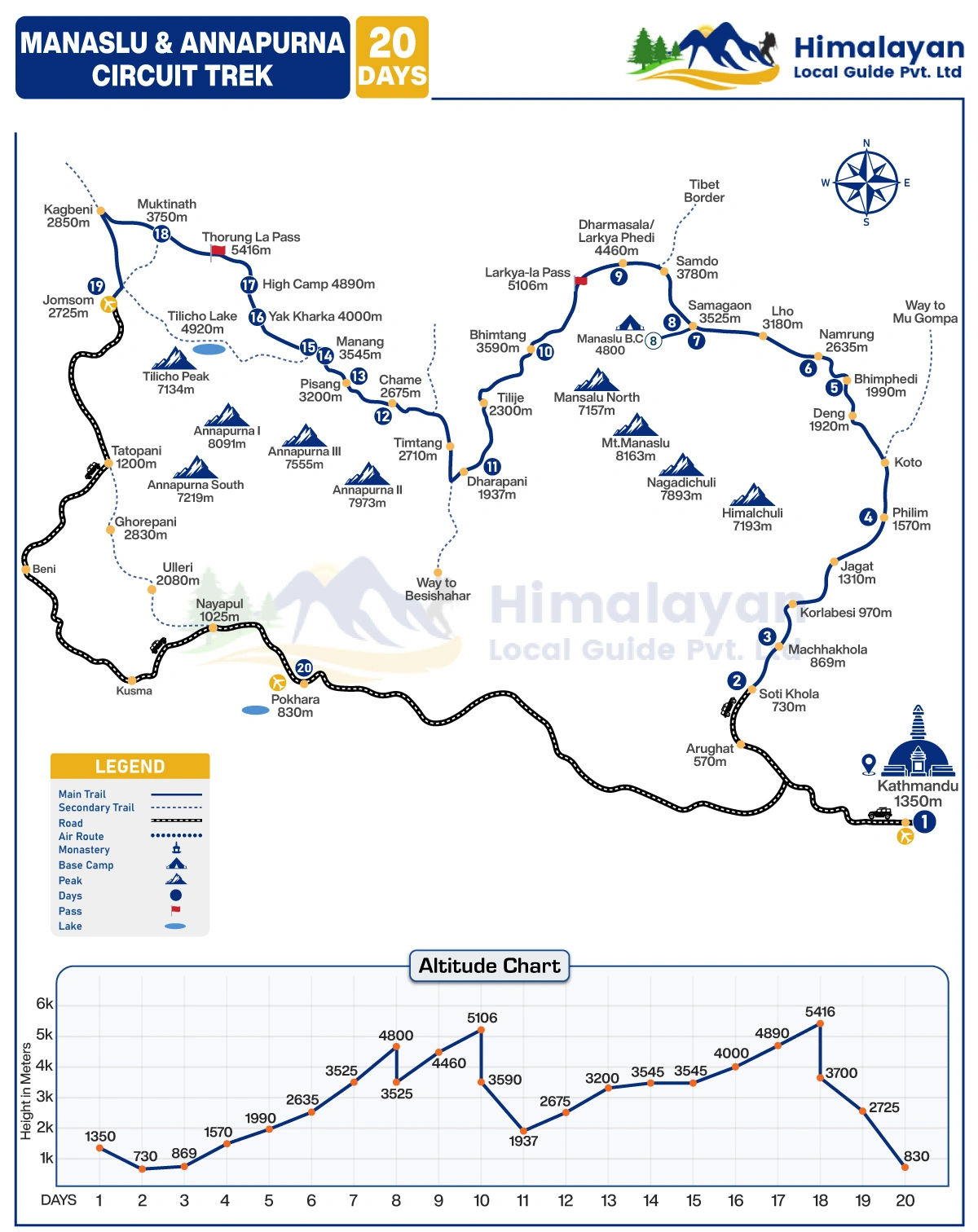 The main highest point of this Trek is 5416meters.