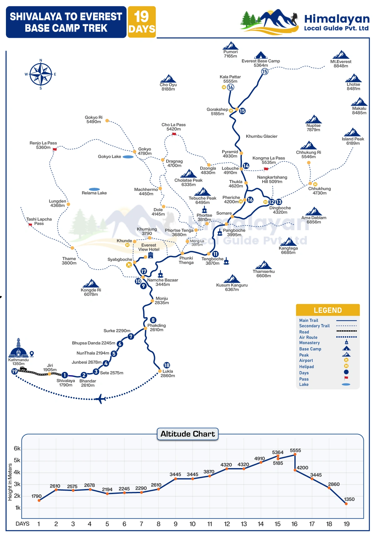 As we are providing, if you are looking for a better challenge or if you would like to just Spend a few more days in the Nepal Himalayas, Himalayan Local Guide Pvt. Ltd is conceited to present a host of alternative routes for you to think about. Travelers/Trekkers extra time to additional will find our Trip packages to Everest Base Camp Trek, Everest Base Camp Gokyo Lakes Trek, Everest 3 Three Passes Trek, Phaplu to Everest Base Camp Trek - 18 Days.